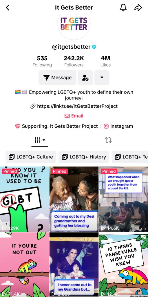 This is my first time writing to you here. I wanted to tell you that your picture is on the front page of the It Gets Better Project’s Tiktok and Instagram pages.